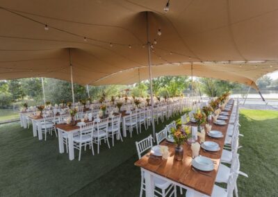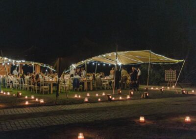 A 6×12 m-es és a 8×12 m-es beduin sátor összeillesztésével egy olyan tágas és mégis meghitt teret hoztunk létre, ahol a természet és az elegancia harmóniában fonódott össze.